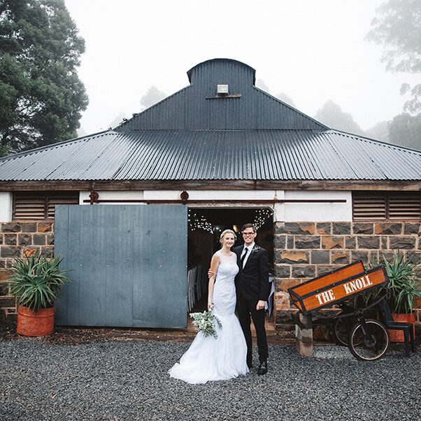 The Knoll Shed is the heart of the reception. Its sides open and close so the venue adapts to the weather, and the lawn out front is made for canapes and lawn games before guests move inside for dinner. A wedding coordinator runs the venue side on the day, which makes the planning lighter for couples.